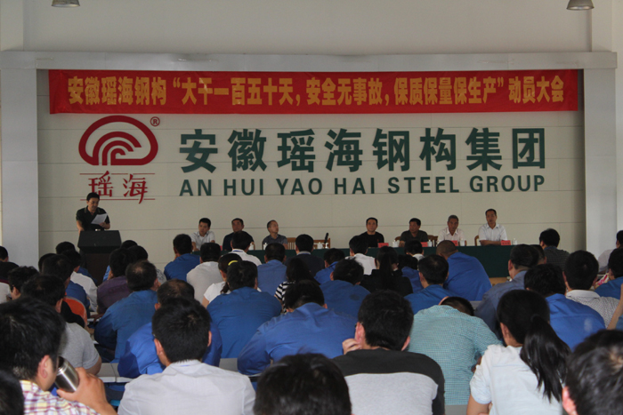 2013年6月3日下午两点,安徽yl6809永利集团集团公司在公司多功能厅隆重举行了“大干150天,安全无事故,保质保量保生产”劳动竞赛动员大会并取得圆满成功。 大会首先由集团公司董事长凌红兵做赛前动员,并就钢结构企业的发展前景和2013年yl6809永利集团集团公司向重钢产业转型、发展的整体思路。会上凌总首次提出了“树信心、定战略、用干部、抓执行、育文化”的指导思想,凌总指出:精神是立业之本,而斗志和信心有事比资本更重要;