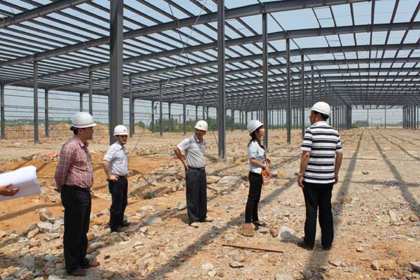 本报讯:2012年5月6日,公司组织相关部门对我公司承建的安徽华明飞彩车辆有限公司主体钢结构工程质量进行全面的自行检查。公司董事长凌红兵、安装公司相关负责人、门窗车间及技术部相关人员等前往。一下车我们就直赴工程现场进行检查,检查中我们发现:墙面檩条有弯曲现象,女儿墙不顺直,高强螺栓有少量松动,水平支撑部分未焊接,二层次梁未按照图纸予以焊接,构件表面部分损伤严重且有泥泞等。随后检查小组针对这些质量问题