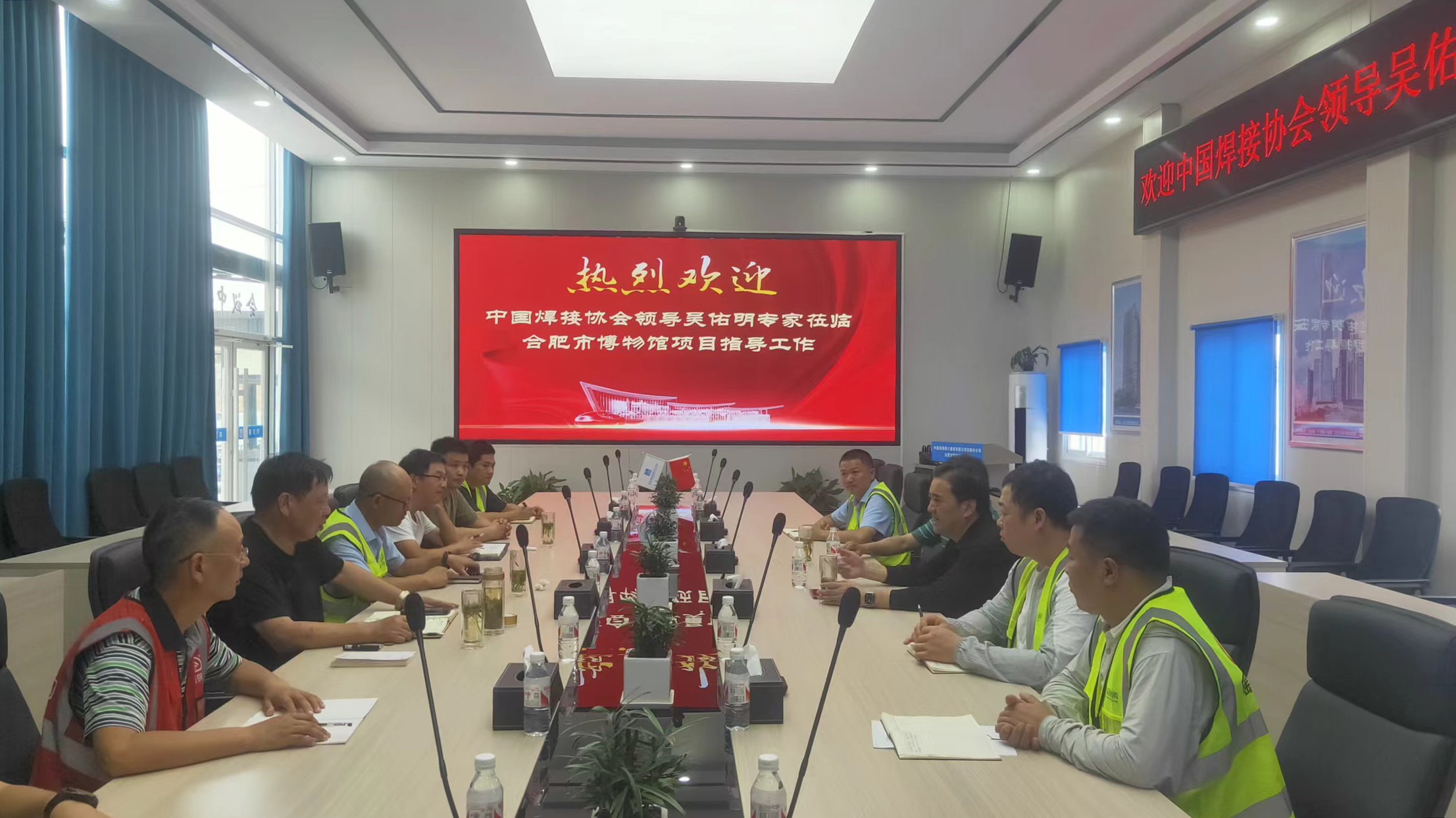 6月12日上午,湖北省机械工程学会焊接专业委员会理事长吴佑明随同yl6809永利集团董事长凌红兵莅临合肥市博物馆项目视察指导工作,并应邀业主单位——合肥东投公司博物馆项目负责人朱坤等领导参与并听取我公司的汇报。