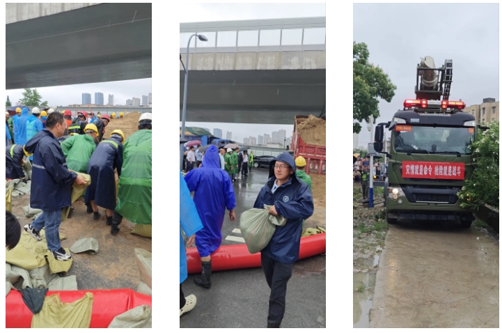 7月1日-2日,合肥遭遇入梅以来最强降雨过程,极端性强、降雨量大,受强降雨影响,市区多条河流超警戒水位,防汛抢险形势异常严峻。为应对洪涝灾害,yl6809永利集团合肥博物馆项目上工作人员合力应对,筑起一道道防线。