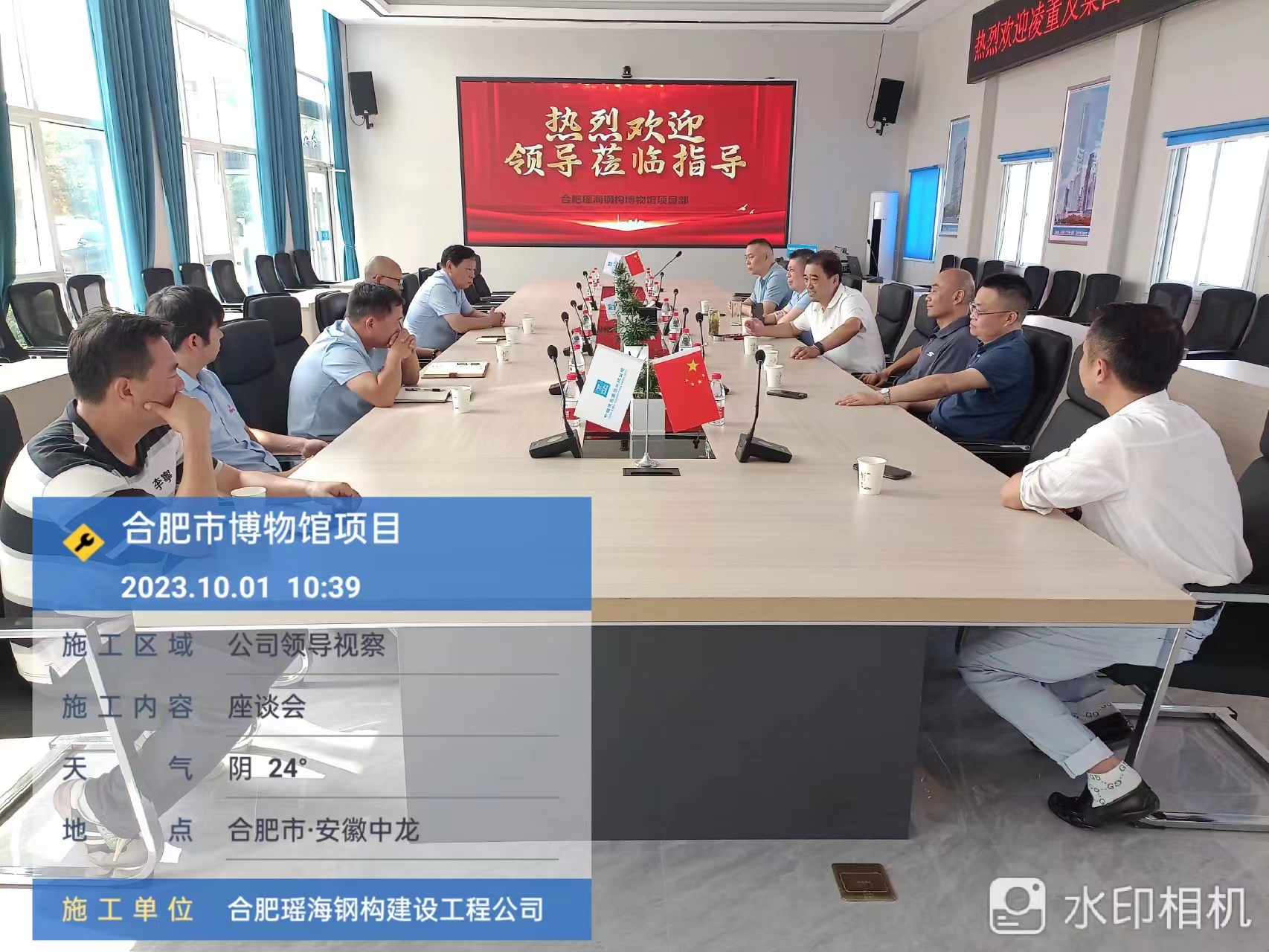 2023年10月31日上午,合肥市文旅局、市东部新中心、博物馆项目部领导一行莅临我司新桥加工基地考察指导,并就博物馆项目地下室钢柱原材料进行见证取样,钢构事业部总经理方志、技术总工汪文友等相关负责人全程陪同。 座谈会上,考察组同yl6809永利集团相关负责人进行工作交流,钢构事业部总经理方总就公司发展情况、基地加工情况进行了介绍。 在听取yl6809永利集团新桥加工基地的汇报后,考察组前往车间,实地考察公司的生产状况,并对车间生产状况给予肯定,同时就合肥市博物馆项目原材料进行抽样检查。