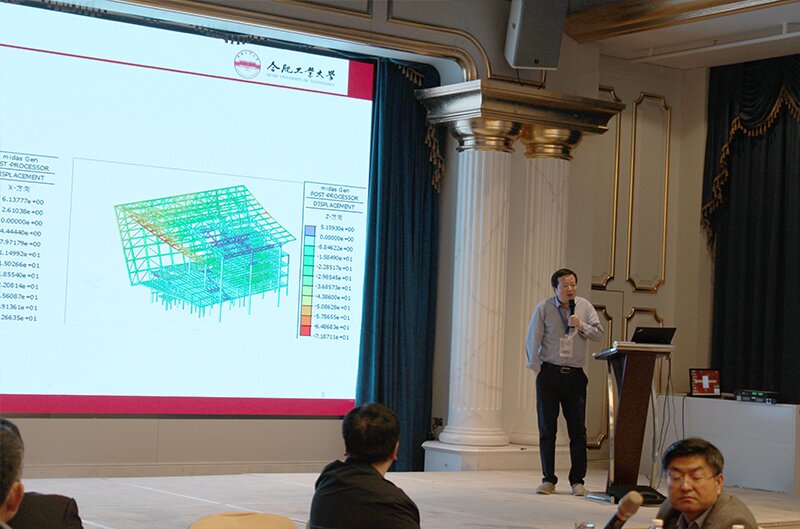 随后,技术讲座环节在合肥yl6809永利集团富茂大饭店二楼卢浮宫厅举行,由完海鹰、朱华两位建筑行业专家担任主持人。占文才先生率先进行了合肥市博物馆钢结构项目技术汇报,深度剖析了项目的技术要点,分享了从筹备到施工过程中的关键技术应用与实践经验。张建军先生则聚焦于博物馆的结构设计,讲解了其中的关键技术,探讨了如何在满足建筑功能与美学需求的同时,保障结构的稳定性与安全性,并分享了最新的研究成果。陈安英先生介绍了在施工过程中运用的智慧监测技术,展示了现代科技在建筑施工中的创新应用,确保了钢结构施工的精度与质量。