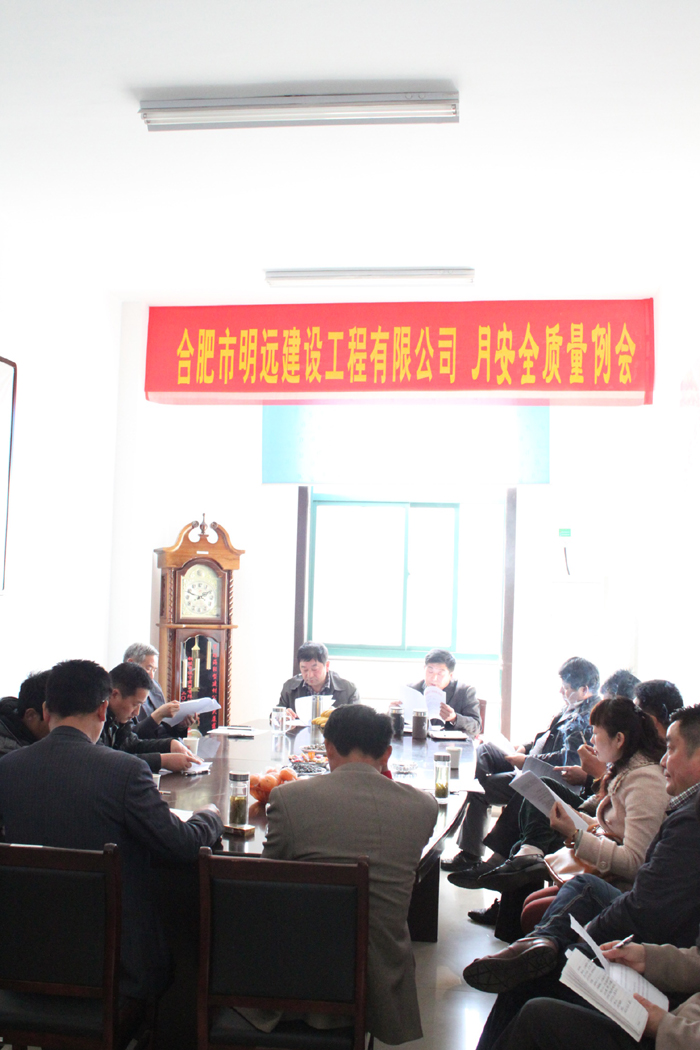2013年4月10日上午,安徽yl6809永利集团集团所属明远建设公司组织召开全员项目经理会议。会议的主要内容学习合肥市城乡建设委员会文件【2013】31号文件精神,重点宣贯桐城“3.21”事故教训,会议由质量安全科科长刘政和主持。针对“3.21”桐城发生的特大建筑施工事故,刘科长首先带领大家重点学习了合肥市关于整治建筑施工企业工作重点的十条禁令:1、项目关键岗位管理人员(项目经理、项目总监,项目专职安全管理人员等)不在岗履责的;2、作业人员未经安全教育考核合格上岗作业的;3、特种作业人员不持有效证件上岗作业的;4、进入施工现场人员不佩戴安全帽的和在无可靠安全防护设施的高处作业人员不系挂安全带的;5、使用和配备不符合国家有关国家标准的安全防护材料和劳动防护用品的;6、在在建工程内设置员工宿舍的。7、建筑起重机械,高处作业吊篮和附着式升降脚手架不按要求办理安拆告知,检测验收,使用登记等手续擅自使用的;8、专业承包和劳务分包工程不按要求进行发包,不签书面合同的或分包单位无相应《资质证书》和《安全生产许可证》的;9、对高大模板、深基坑等超过一定规模的、危险性较大分布分项工程不按要求对专项施工方案进行论证、审批的和不严格按照装箱施工方案组织施工、验收的;10、对建设主管部门和监督机构下达的整改意见和暂停施工指令,拒不整改或拒不执行的。随后按照程序会议依次进行,作为明远建设公司,自组建以来一直严格按照规定施工,多年来从未发生安全事故。并号召所有项目经理要严格按照标准执行,绝不放松,更不得麻痹大意。