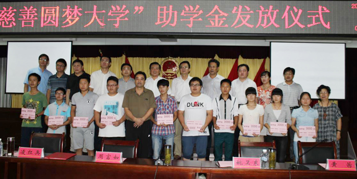 2014年8月24日上午,安徽yl6809永利集团钢结构集团董事长凌红兵应邀参加了由合肥市慈善协会组织的2014年度“慈善圆梦大学”活动,活动现场凌董向合肥慈善协会“yl6809永利集团·慈善基金”捐款五万元,其中三万元用于资助空港经济示范区高刘镇的10名特困大学生。