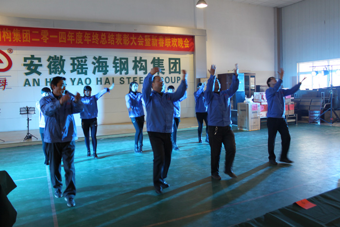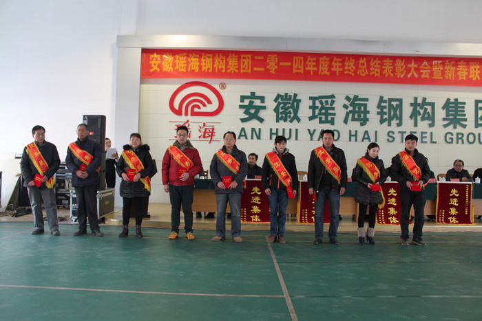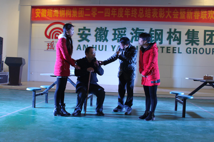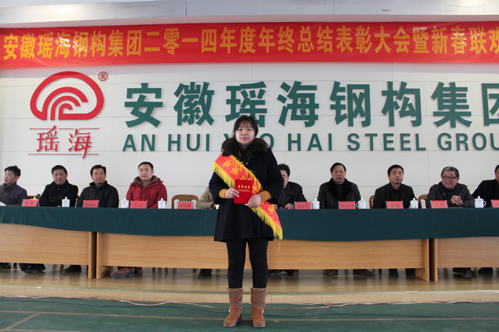 本报讯:2015年2月7日下午,安徽yl6809永利集团2014年度年终总结表彰大会暨新春联欢会在多功能厅隆重召开,董事长凌红兵及相关领导、全体员工参加了此次的会议。表彰会上,工会主席王一麟宣读了表彰决定,董事长凌红兵做工作总结:2014年是形势严峻的一年,也是不平凡的一年。一是房地产,实体经济产能过剩,二是银行抽贷,担保押保现象严重,但就是在这种异常艰难的情况下,各项工作仍然在按部就班地开展,并取得了一定的成绩,尤其在经营管理、资质升级等方面取的了重大进展。会上凌总指出,在成绩面前,我们也应该清晰地看到不足:1、员工的思想水平和综合素质及干部的管理水平和业务技能有待加强。2、规章制度的落实还不够全面到位。3、安全问题时有发生4、市场营销手段有待进一步创新……表彰会上凌总还通过具体的实例表扬了2014年为此做出努力的员工,今天,即将在大会上表彰的先进个人就是我们yl6809永利集团员工的杰出代表,是我们企业的脊梁。总结会后,29名优秀员工,3名红管家,3名优秀管理者,2名优秀项目经理,1名董事长特别奖以及4名先进集体伴随着颁奖音乐分别上台接受表彰和领奖,随后各先进代表依次上台发言。晚会现场更是热闹非凡,晚会伊始,由新桥事业部选送的舞蹈——《小苹果》登场,统一的服饰、优美的舞姿不时迎来一阵阵的掌声和笑声,将晚会的气氛浓浓地渲染出来了。随后由财务系统选送的小品《甄嬛传》,更是将晚会推向一个至高点,表演者来自财务系统的一线员工,他们反串的表演,夸张的表情,模仿的近似成为了众多笑点。随后的小品《都是一家人》也引起了不小的反响,质朴的言语,近人的表演,整个会场被此时此景深深打动。晚会最后以一首脍炙人口合唱歌曲《相亲相爱的一家人》中结束。