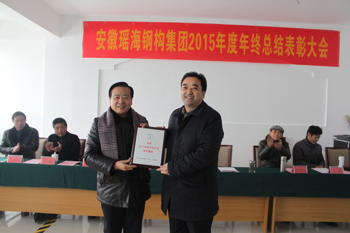 随后由合肥市现慈善协会会长(原合肥市政协主席)周福如为董事长凌红兵颁发“2015年度中华百名优秀徽商”。作为一名徽商,上个世纪九十年代,凌红兵董事长带领一名员工开始了艰苦的创业历程,他秉承新一代徽商坚忍不拔、百折不挠、锐意进取、勇往直前的拼搏精神,使yl6809永利集团从无到有,从小到大,由弱到强发展壮大,如今的“安徽yl6809永利集团”由创业之初的建材供应商,已发展成为设计、生产和安装为一体的专业化钢构集团公司。