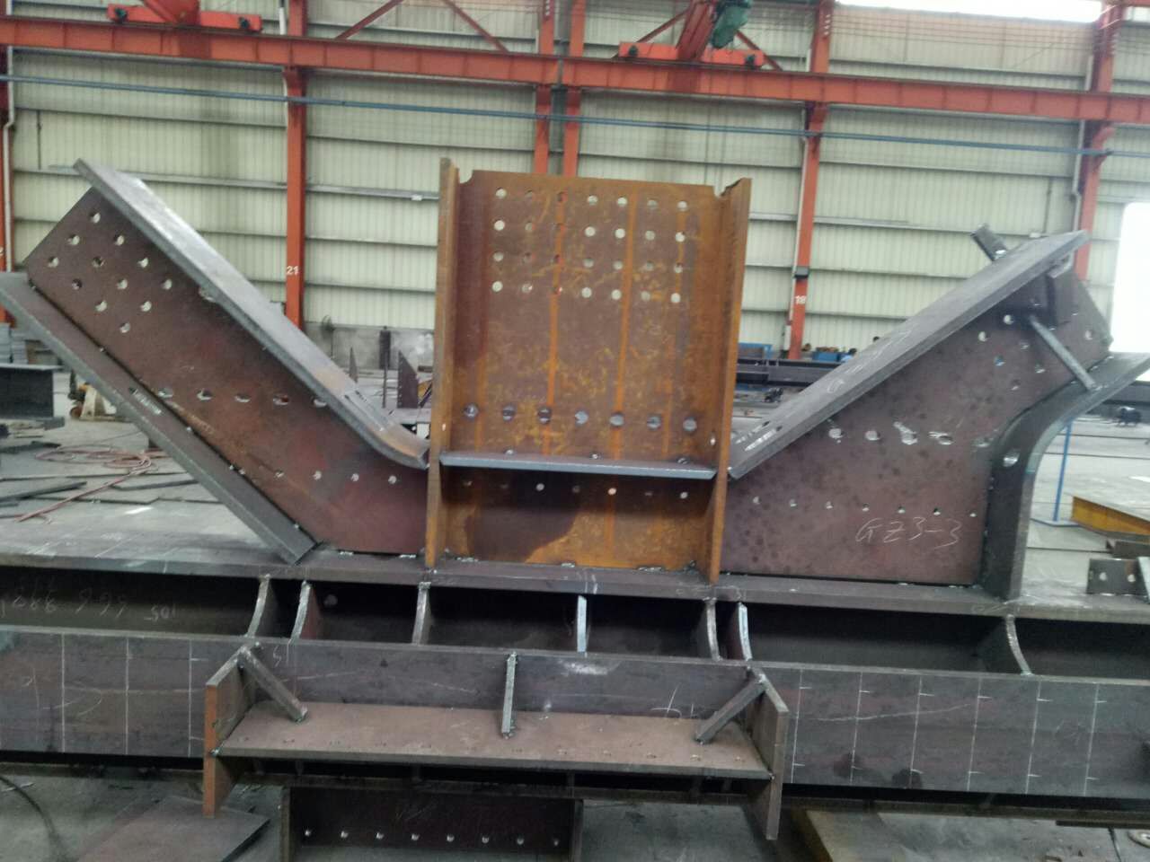 第一时间,第一报道:今天下午京东方工程方代表来公司了解钩构件制做进展情况。汪总李厂等一行陪同参观,从下料工段到外协生产线,最后来到中间成型工段,看到李厂这边已经组装焊接成型的钢柱,经过和汪总技术交流后拍手叫好:“你们是三家制做企业中质量做的最好的!”