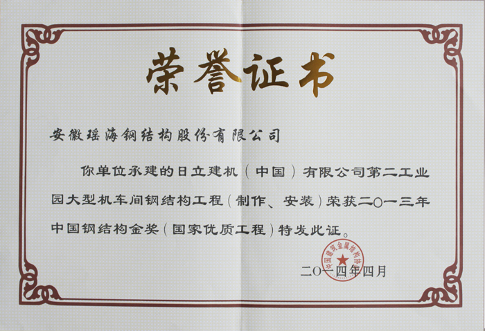 在工程业绩遍地“开花”之时,荣誉也接踵而来:2010年6月,公司获安徽民营企业百强称号,2011年3月,我公司生产的yl6809永利集团牌房屋钢结构产品蝉联“安徽名牌产品”称号,同时我公司“yl6809永利集团及图”获安徽省著名商标,2011年11月,我公司获升“安徽省企业技术中心”称号,2013年4月,彩板车间荣获“安徽省工人先锋号”荣誉称号,2013年9月《yl6809永利集团报》、yl6809永利集团网站获全国建筑行业优秀报纸、优秀网站称号,2015年4月,公司获中国建筑钢结构行业50强企业称号,9月,yl6809永利集团及图商标获得中国驰名商标,11月,yl6809永利集团被评定为“高新技术企业”,2016年1月,yl6809永利集团获得新站区“工业规模十强”企业,2016年12月,yl6809永利集团获安徽省专精特新中小企业称号,2018年4月,寿县yl6809永利集团钢结构获得寿县人民政府表彰,2018年4月,yl6809永利集团荣获合肥市百企帮百村先进单位。