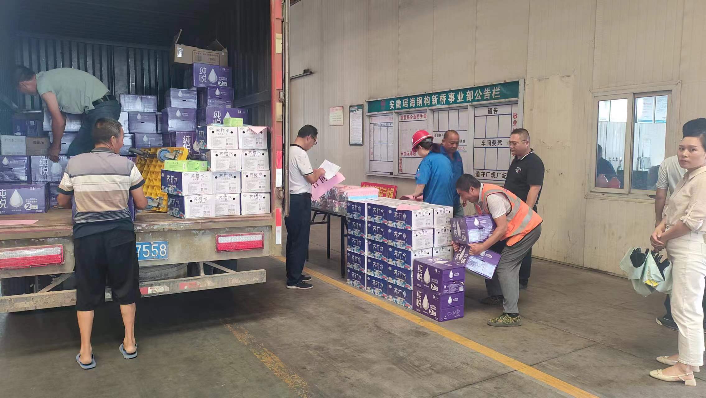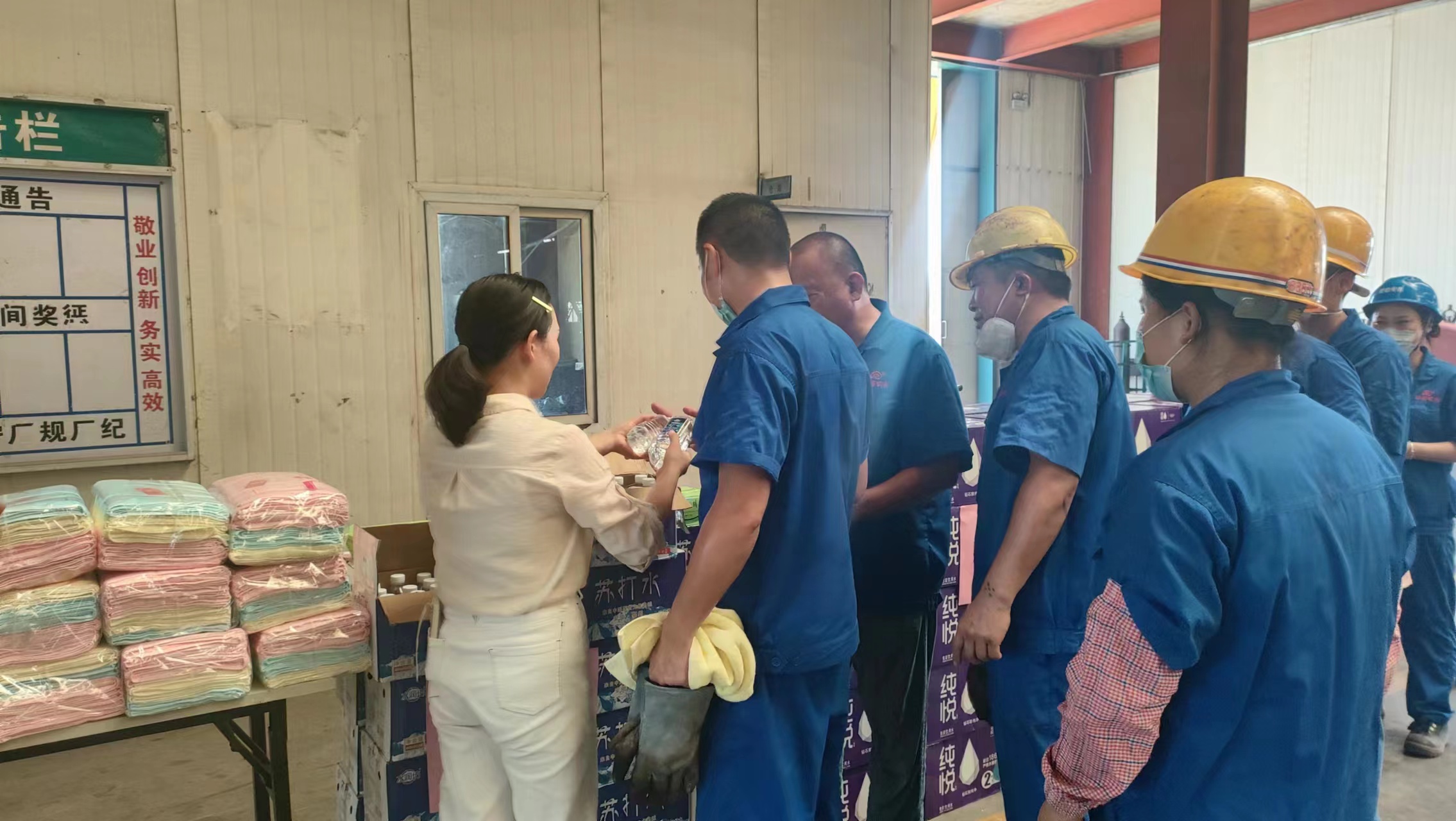 为员工送去降温水和毛巾等防暑品