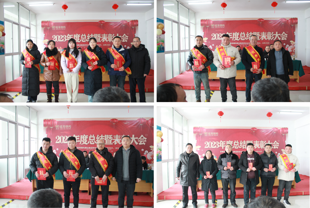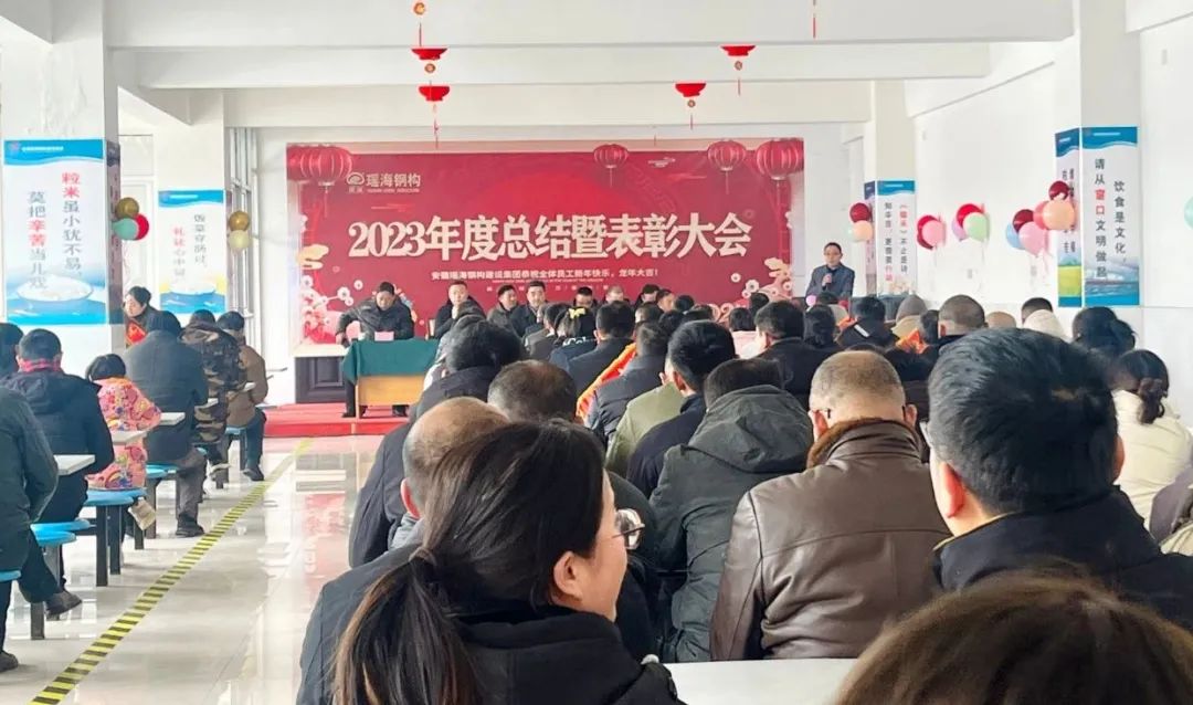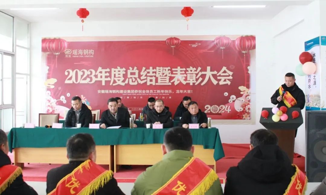 金兔已去春风暖,龙年乍来喜气浓,2024年2月7日,安徽瑶海钢构建设集团2023年年度总结暨表彰大会在yl6809永利集团新桥生产基地隆重召开。总结会围绕2023年取得的各项成绩及对2024年的规划展开,同时对2023年度为公司发展作出突出贡献的“优秀员工”和“优秀管理者”等进行表彰,集团公司董事长凌红兵、各事业部主要负责人、职能部门职工及生产基地全体职工欢聚一堂。
