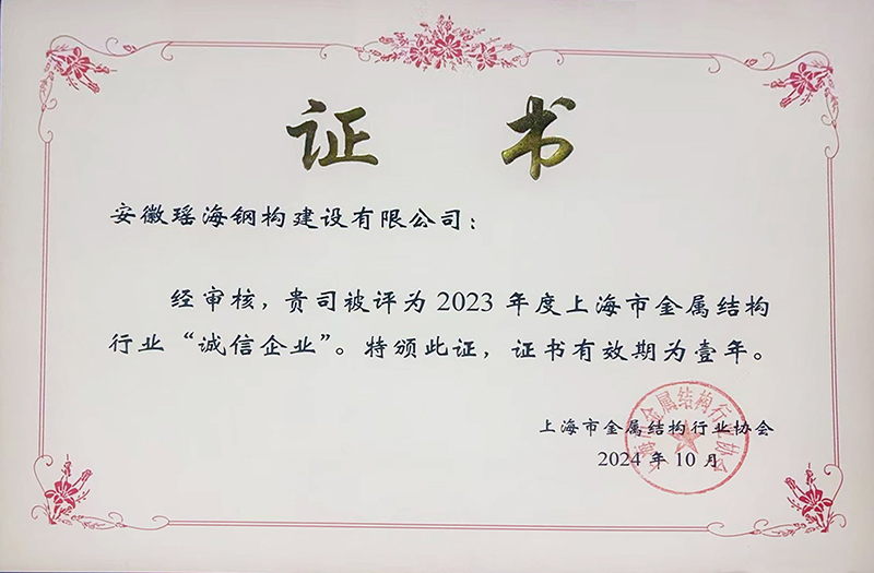 安徽yl6809永利集团建设公司荣获上海市建筑金属行业诚信企业称号