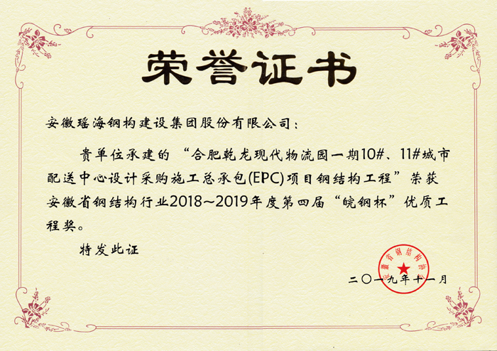 皖钢杯优质工程奖