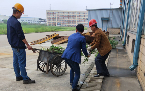 2019年4月22日上午,新桥后勤部保安队长崔俊岭协同仓库装卸班付学康、耿义彪、陈福祥、叉车工贾昌丽等人对厂房周围、南北货场及道路进行一次除草行动。为此给他们点赞!